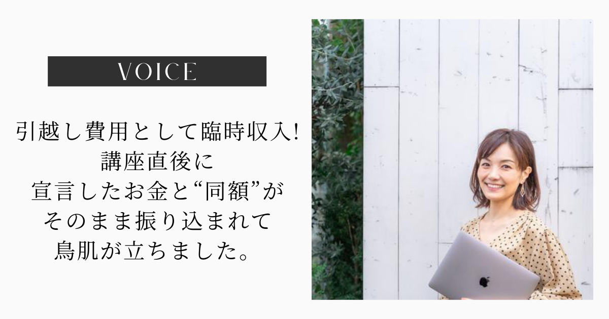 引越し費用として臨時収入!講座直後に宣言したお金と“同額”がそのまま振り込まれて鳥肌が立ちました!