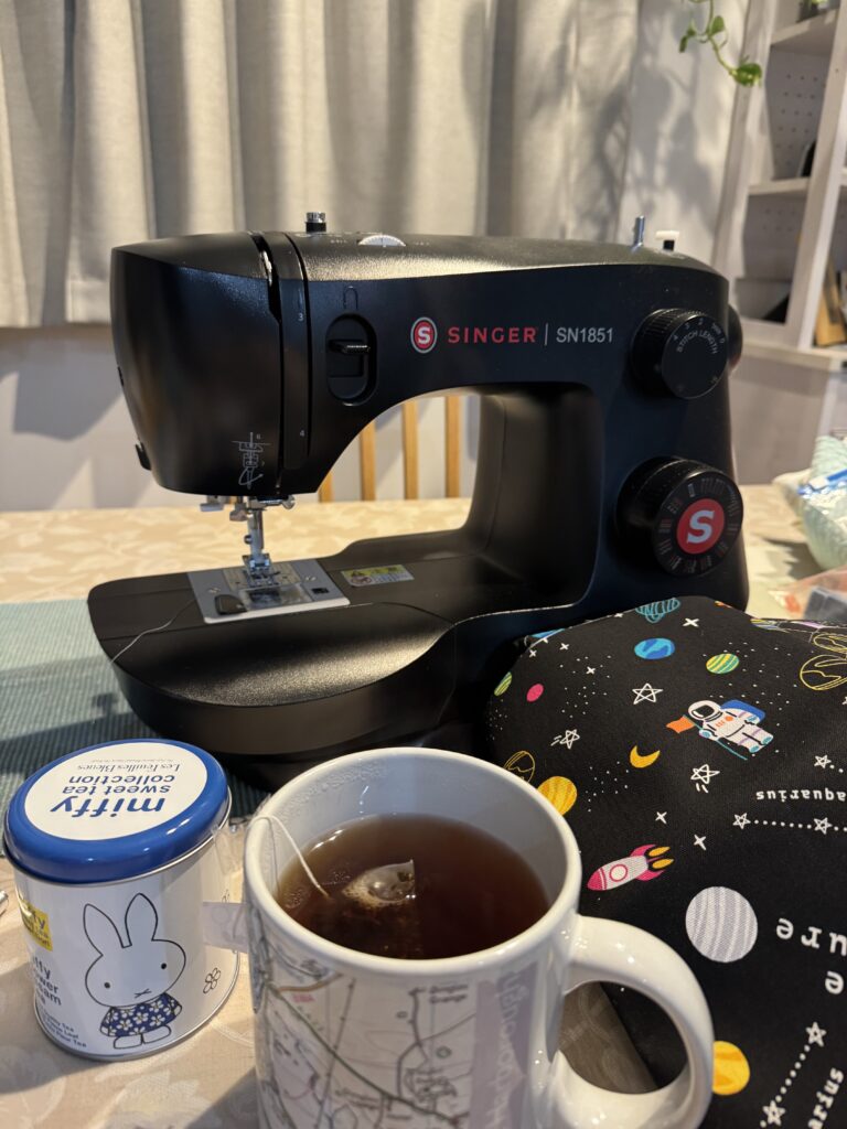 夜中にミシンで入園準備